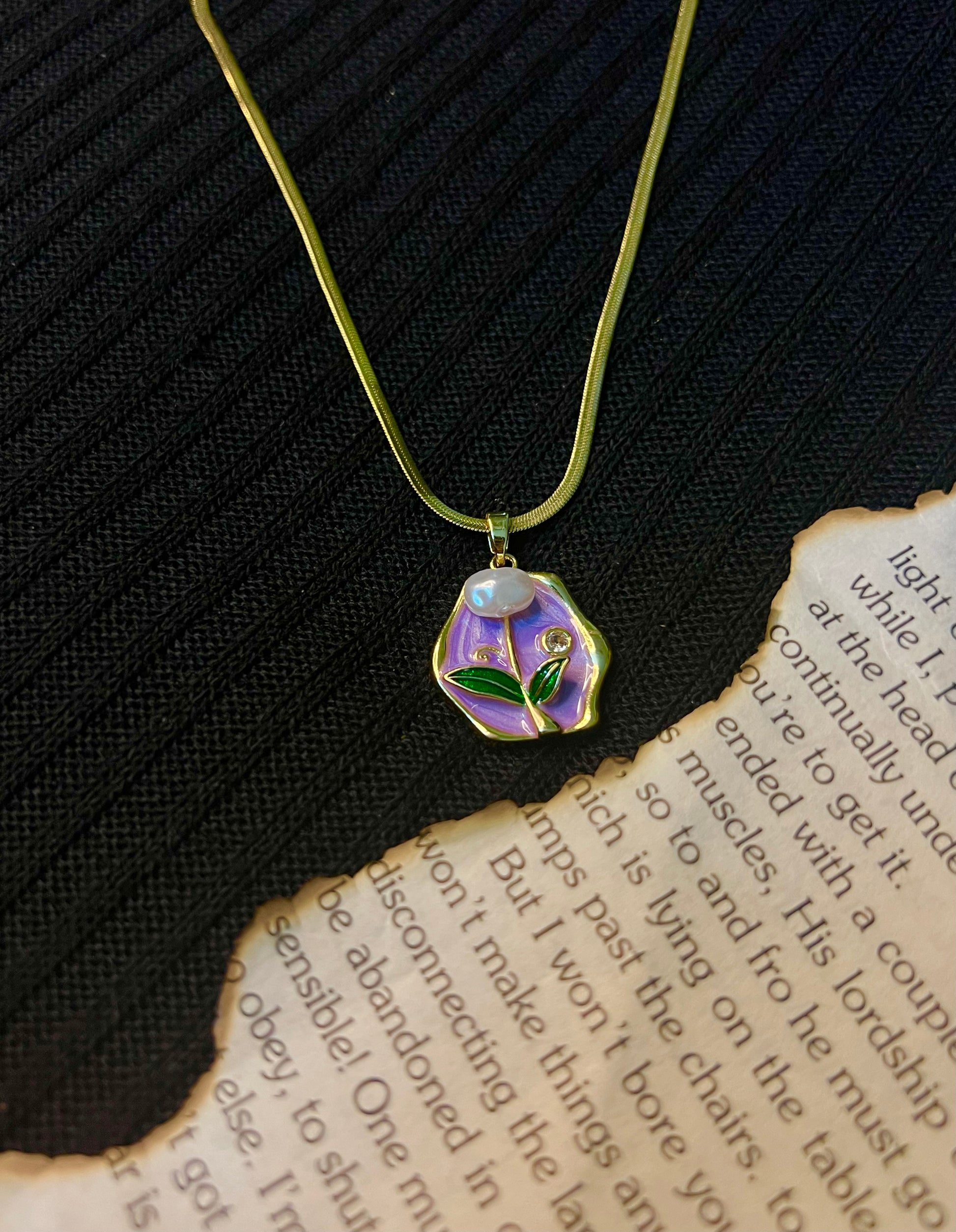 A charming gold-tone snake chain with a beautiful flower pendant, topped with a pearl. Perfect to add a touch of luxury to your daily look. Available in two colours.
